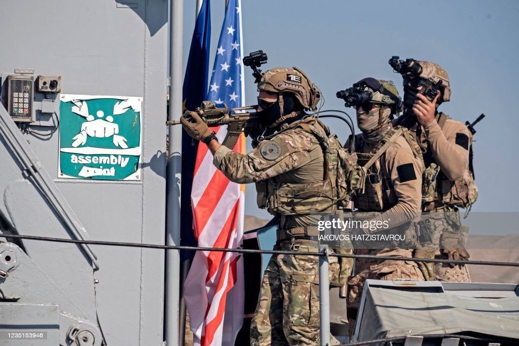 «Морские котики» ВМС США и спецподразделение MYK ВМС Кипра во время совместных учений.